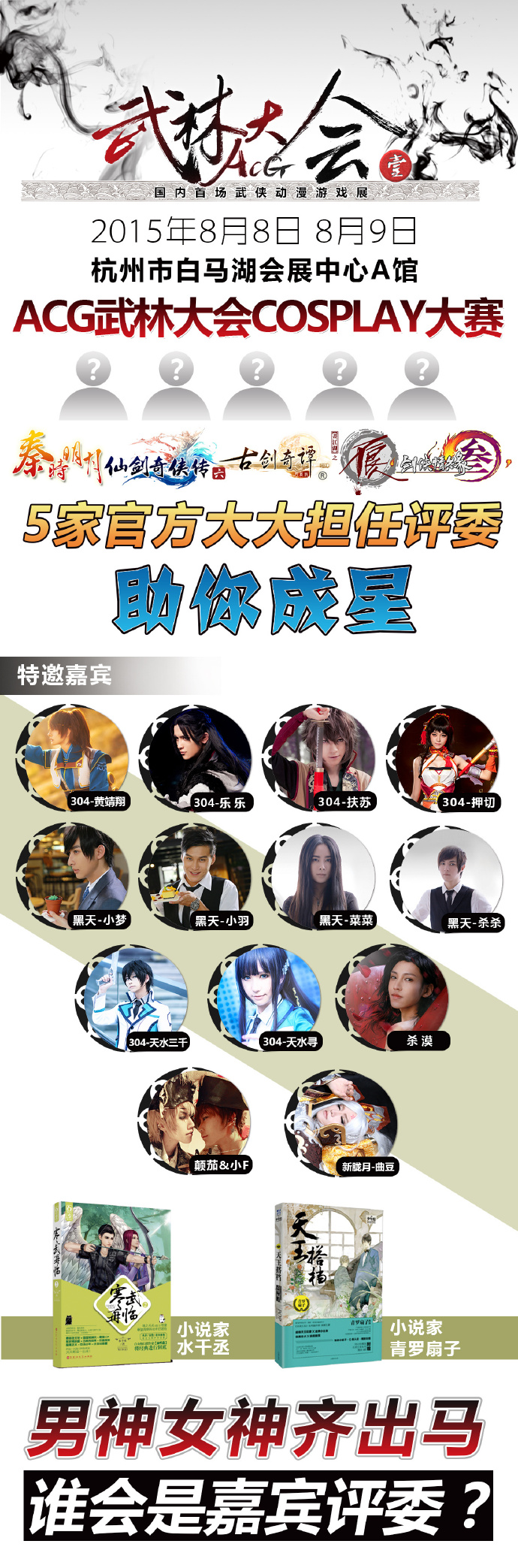2015年8月8-9日杭州白马湖国际会展中心A馆,首届“ACG武侠游戏动漫展”带你走进江湖,8月9日晚最顶级古风音乐盛典,超豪华嘉宾阵容,超专业导演团队!
