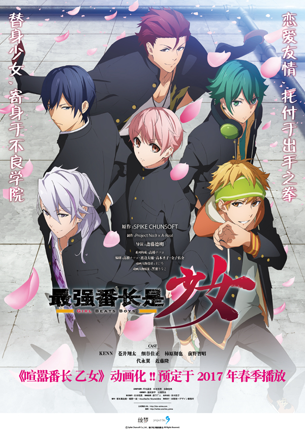超人气少女恋爱冒险游戏《喧哗番长 乙女》动画化决定。动画将以《最强番长是少女 -Girl Beats Boys-》为名,由实力派工作室Project No.9担当制作。作品预计于2017年春季以10分钟短篇动画的形式,进行中日两版放送。绘梦动画将首次担任日本动画制作委员会的组织者,同时负责中国地区的运营。