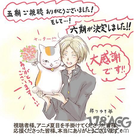 改编自绿川幸创作的同名漫画的「夏目友人帐」动画系列确定将制作第六季,预计2017年播出。