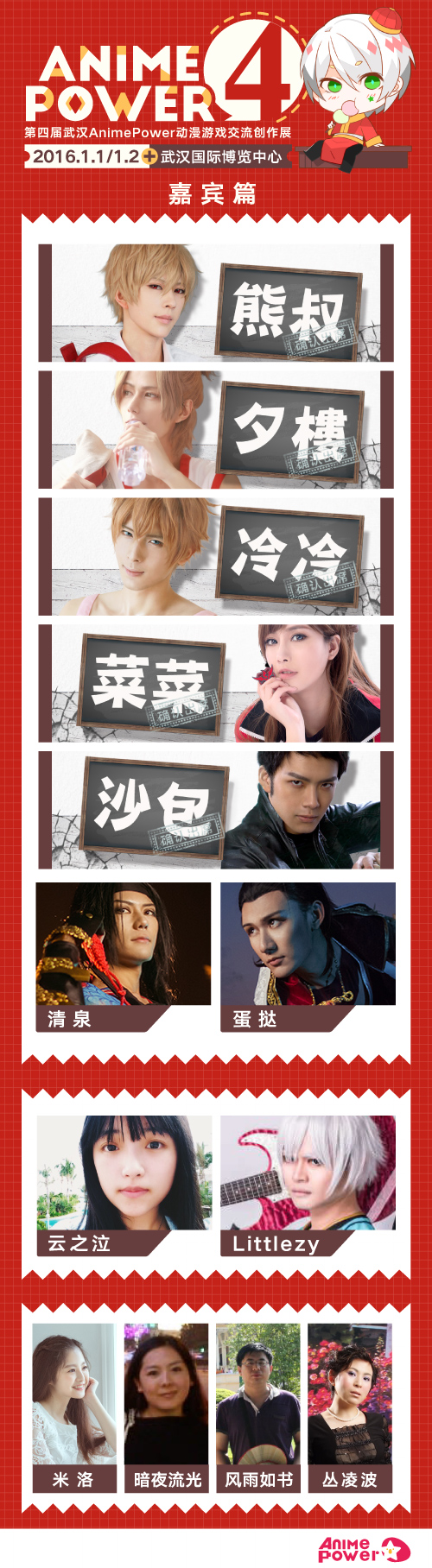 冬日最暖心武汉漫展!第四届AnimePower动漫游戏创作交流展二宣来袭! AP04武汉漫展,冬日最暖心漫展! 日本人气声优门胁舞以携萌音来袭; 超人气coser熊叔、夕楼、菜菜、沙包、冷冷、清泉、蛋挞惊艳登场; 古风女神云…
