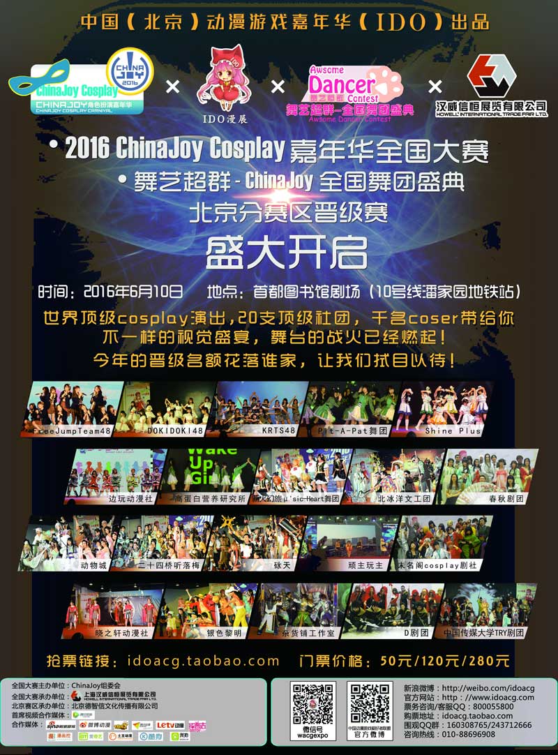 2016 ChinaJoy Cosplay嘉年华全国大赛与舞艺超群-ChinaJoy全国舞团盛典北京赛区晋级赛,火爆开启!顶级社团之战!