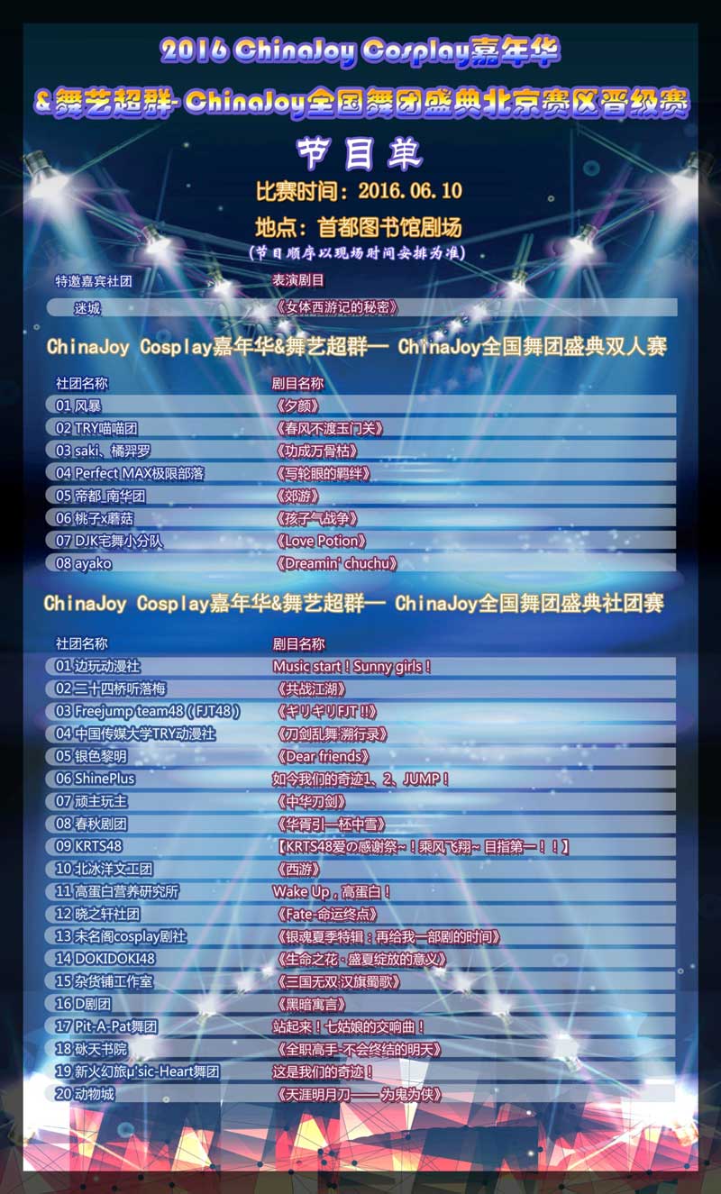 此次由上海汉威信恒展览有限公司主办,北京德智信文化传播有限公司承办2016 ChinaJoy Cosplay嘉年华全国大赛与舞艺超群-ChinaJoy全国舞团盛典的比赛正在进行中,于6月10日在首都图书馆举办北京赛区晋级赛。