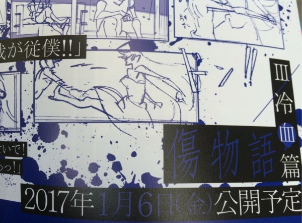 《伤物语》剧场版第二部《热血篇》,将于今天(8月19日)上映。官方也是在今天公开了《伤物语》第三部“冷血篇”的上映日期和宣传绘,剧场版《伤物语》第三部“冷血篇”将于2017年1月6日在日本上映。