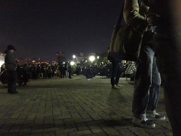从画面上可以看到,尽管天色还未亮,但是现场早就灯火通明。据称在昨晚10点多的时候就已经聚集了很多人,有目击者称不会少于一千人。而考虑到当地夜晚气温接近0度,这些勇士的执着也让人赞叹。