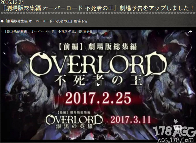 12月24日,在「OVERLORD」的官网中发现,其「剧场版总集篇 OVERLORD 不死者之王」预告片已经公开~