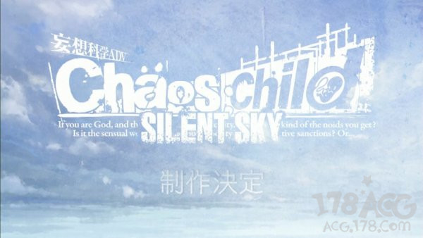 而关于这次宣布制作的「CHAOS;CHILD SILENT SKY」呢,目前还不能确定是「CHAOS;CHILD」的续篇还是全新的故事,同事官方也没注明是TV动画或者是以OVA、剧场版等形式播出。