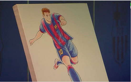 从公布的图片来看,作品很有漫画风格,身披10号战袍的梅西也有点像大空翼。这已不是高桥第一次为梅西作画了。在去年12月19日,巴萨飞往日本踢世俱杯,高桥阳一就已为巴萨画过一幅漫画作品,漫画中有带球突破的梅西以及他的左右护法内马尔和苏亚雷斯、球队队长伊涅斯塔以及后卫皮克。