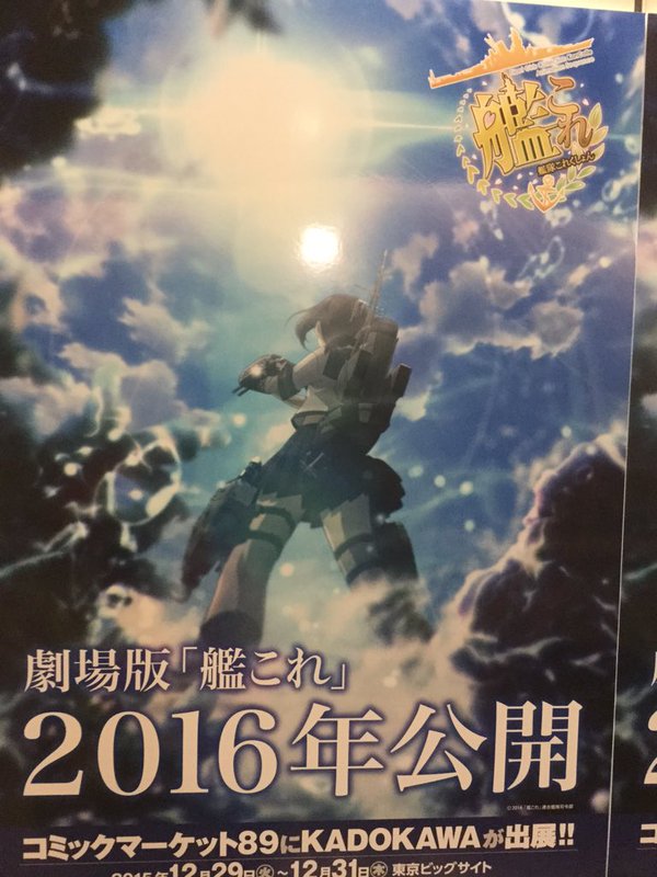 在今年 8 月份举办的「艦これ第二回观舰式」上官方宣布舰娘动画将制作剧场版和第二季动画,而且剧场版还将在 2016 年上映,之后关于这部舰娘剧场版和第二季动画就没有消息了,如同 Rewrite 的动画在临海线东京国际展示场站,这个 Comiket 参战者必经之地中张贴宣传海报一样,舰娘剧场版的海报今天也出现了东京国际展示场站,而海报上的吹雪已经帅得认不出了。