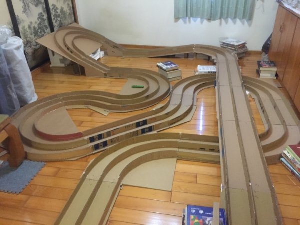 相信不少70和80后都应该玩过四驱车,最近有台湾网民为了送外甥一份礼物,决定自制一条四驱车轨道,不过当中所采用的并非是塑料物料,而是用上廉价的瓦楞纸制成!