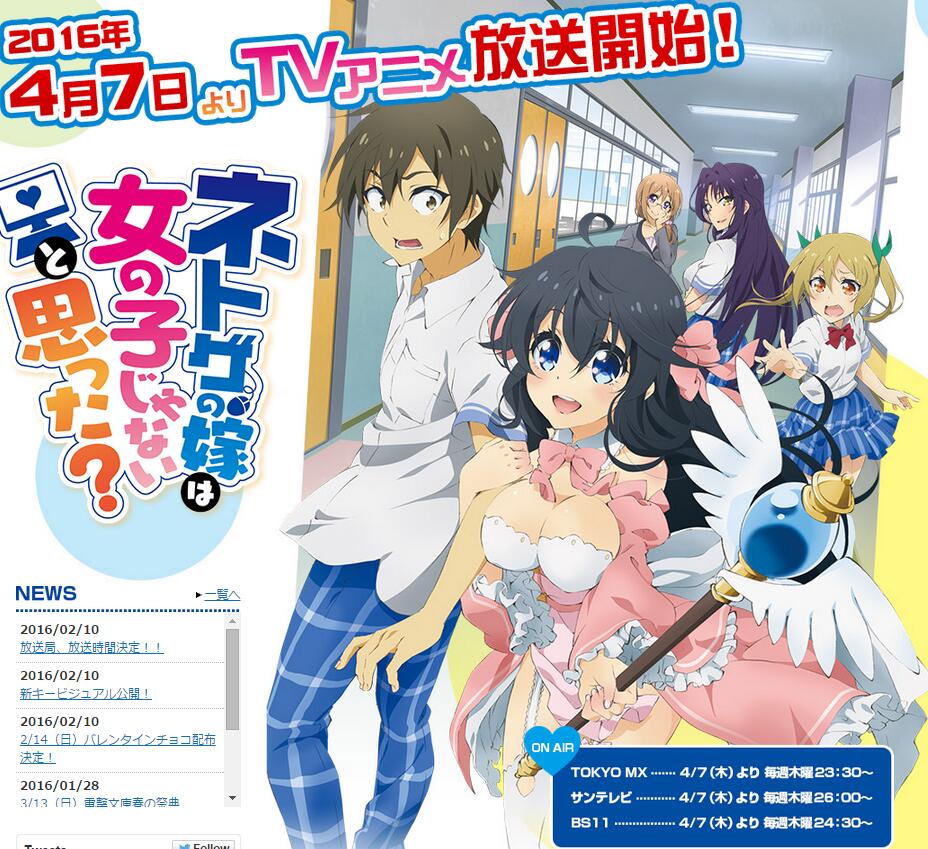 电视动画《线上游戏的老婆不可能是女生?》改编自听猫芝居创作的同名轻小说。于2016年4月7日开播。西村英骑曾经有过一段“在网游里跟女性角色告白,结果发现对方是假冒女生的人妖”这样的黑历史,结果突然有一天他又被一个女性角色告白了。正在英骑怀疑历史重演的时候,却发现线上的“老婆”玉置亚子居然是一个真正的美少女,并且竟然还不懂得区分现实与游戏……?她不但在别人面前直呼…