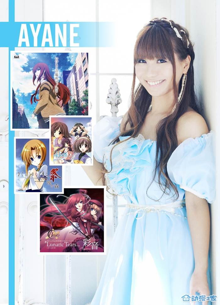 作为新生代女歌手的实力唱将之一,大家应该对彩音熟悉无比了。出道不久即受到知名音乐人、MAGES(前5pb.)霸道总裁志仓千代丸慧眼所拾,随后为其旗下多部作品献声,从MO、龙刻、11eyes到水夏、寒蝉鸣泣之时、石头门,彩音充分地展现了她出色的演唱技巧。从j-pop、电子舞曲到空灵系,彩音都有上好的表现,这次来广州参加NEO GENERATION的演出相当值得期待!
